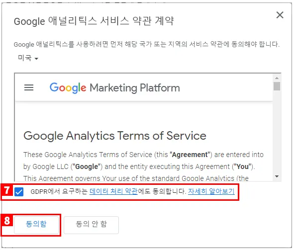 7) GDPR 데이터 처리 약관에 동의 체크를 합니다.