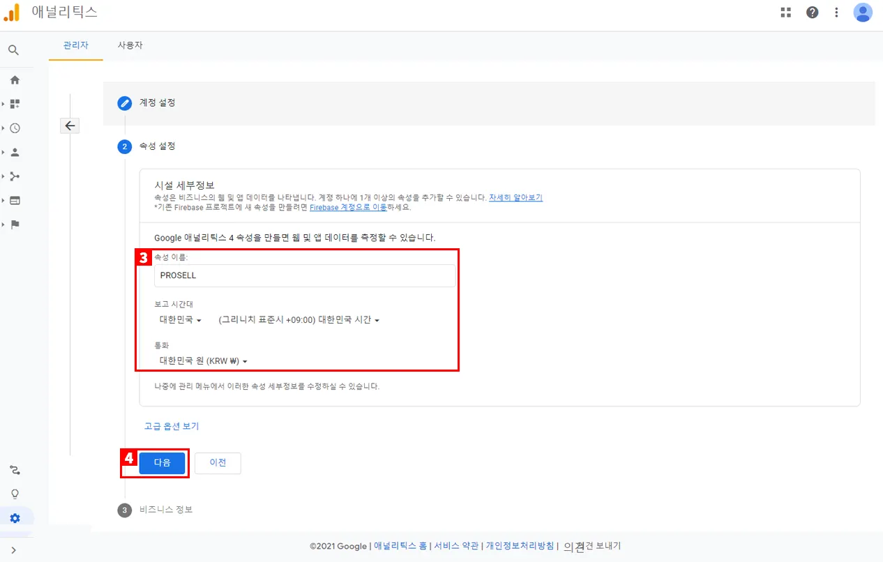 보고 시간대와 통화는 ‘대한민국’으로 선택 합니다.