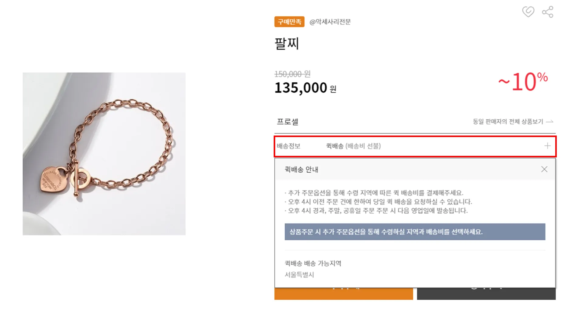 퀵배송 가능지역 : 배송이 가능한 지역을 선택합니다.