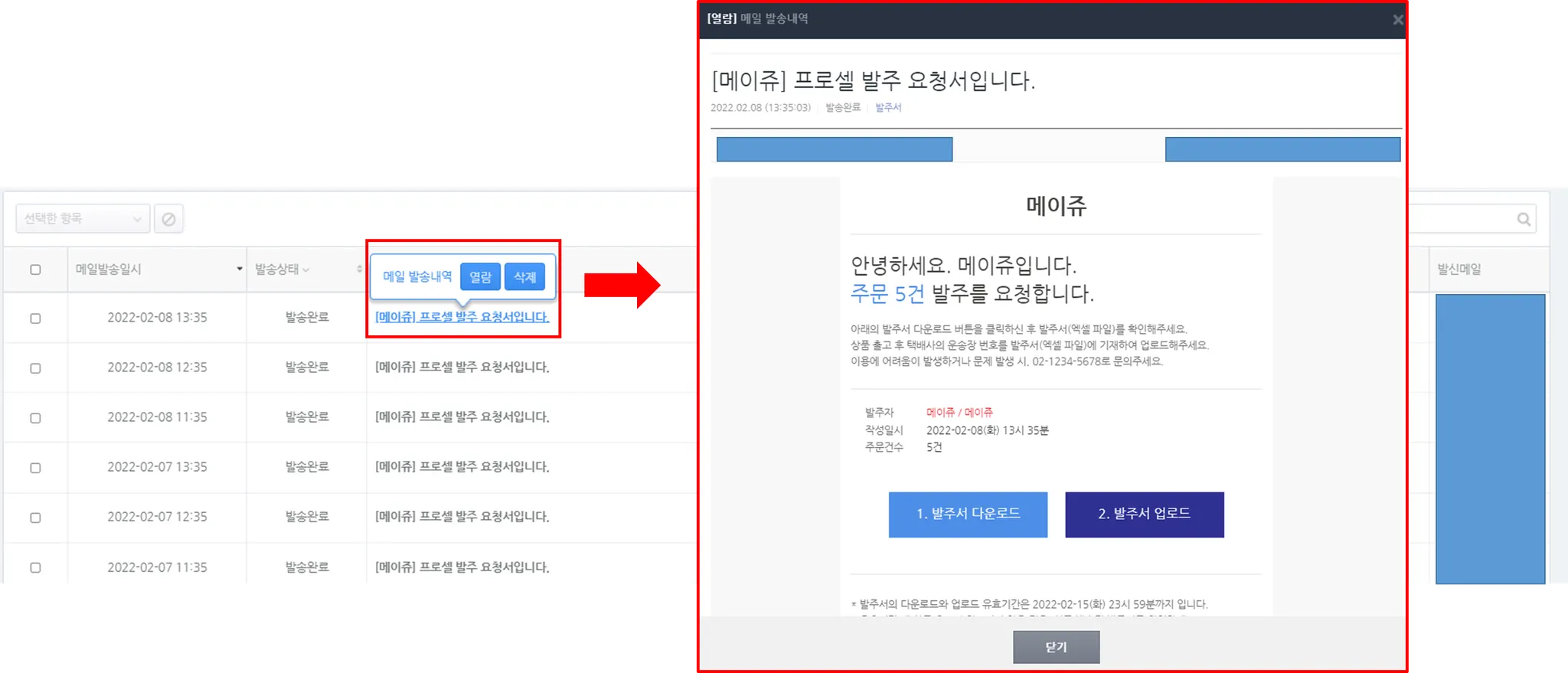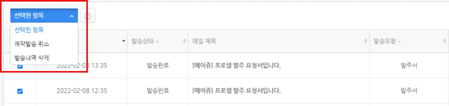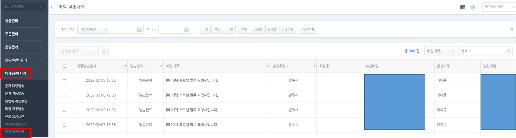 ※ 메일 발송 내역을 확인하는 메뉴입니다.