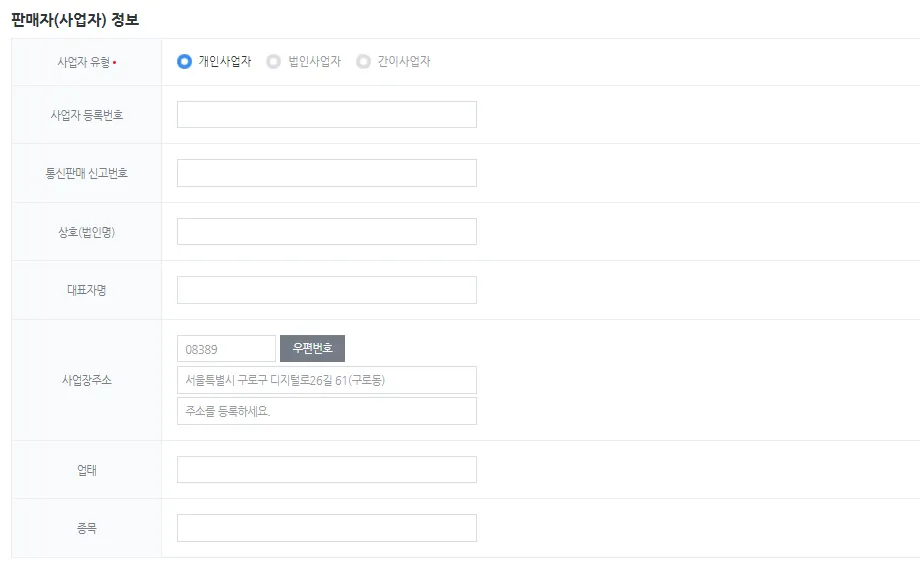 실제 운영중인 서비스 환경과 사업자 정보와 일치하도록 정확히 입력하시기 바랍니다.