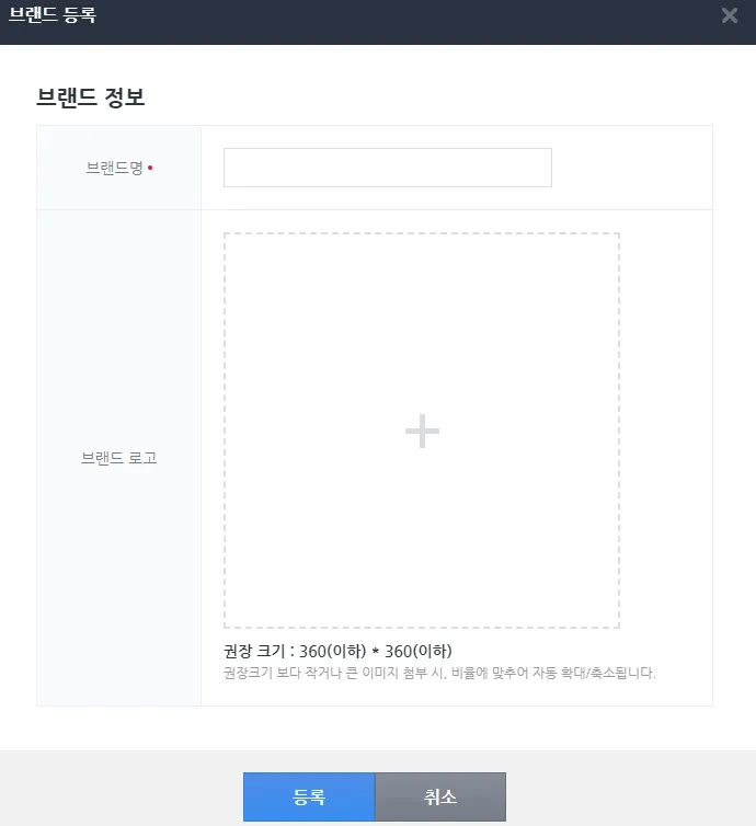 2) 브랜드명 /브랜드 로고를 넣고 등록을 완료합니다.