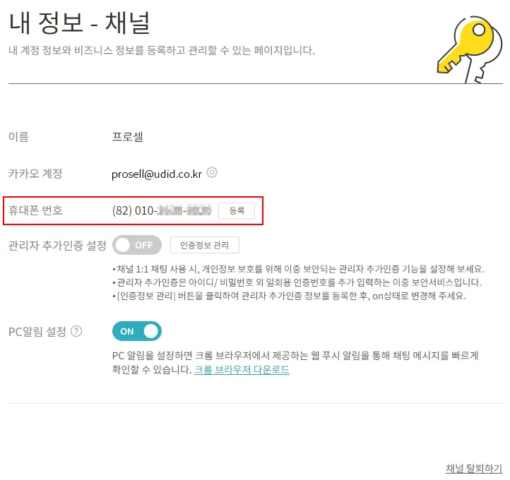 ② 해결 방법 : [카카오 비즈니스 > 내 정보 > 휴대폰 번호]에서 등록된 휴대폰 번호를 확인 후