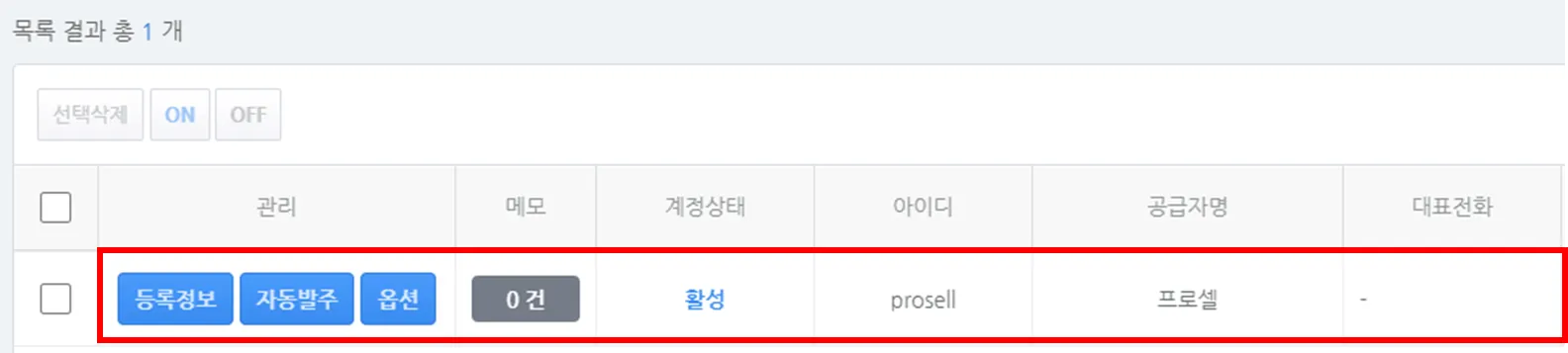 2) 등록이 완료되면 '목록 결과' 에서 등록된 공급자를 확인할 수 있습니다.