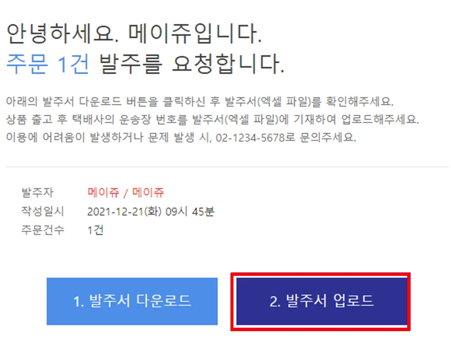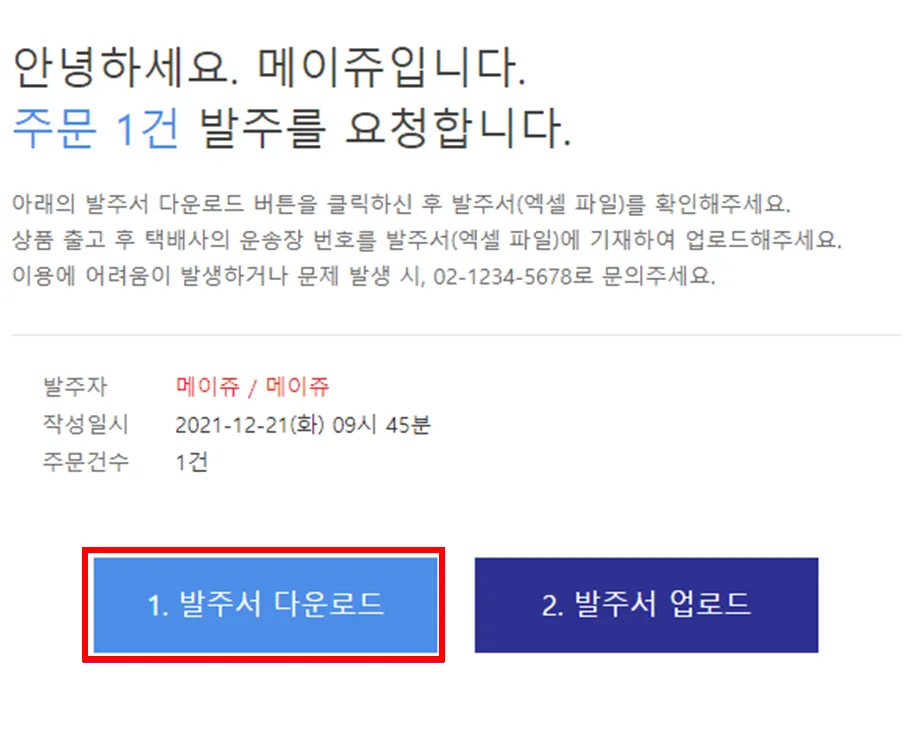 ① 발주서 다운로드를 클릭하고 엑셀 파일을 다운 받습니다.