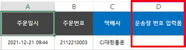 ② 엑셀 파일을 열어 송장 번호를 입력하고 저장합니다.