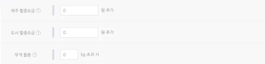 택배 배송방식, 택배사, 무료배송 조건, 기본 배송요금, 제주 할증요금, 도서 할증요금, 무게 할증을 설정한 후 하단의 '등록'버튼을 클릭 합니다.
