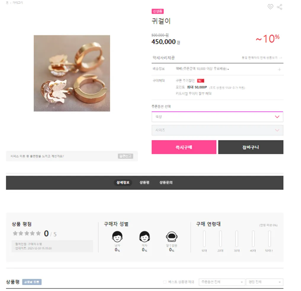 ※ 쇼핑몰 상품페이지 화면에 노출되는 상품 정보를 설정하는 메뉴입니다.