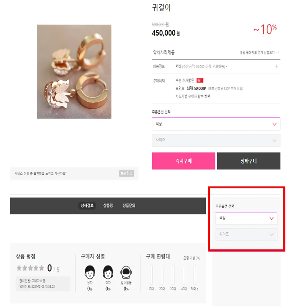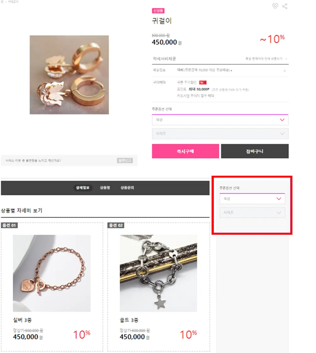 상품페이지 옵션 선택 메뉴를 추가로 노출하는 기능입니다.