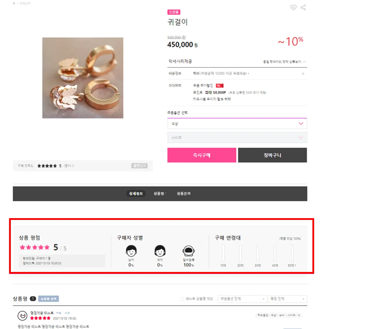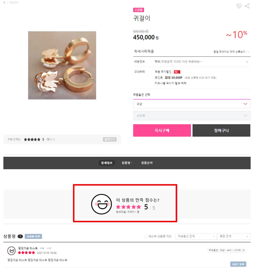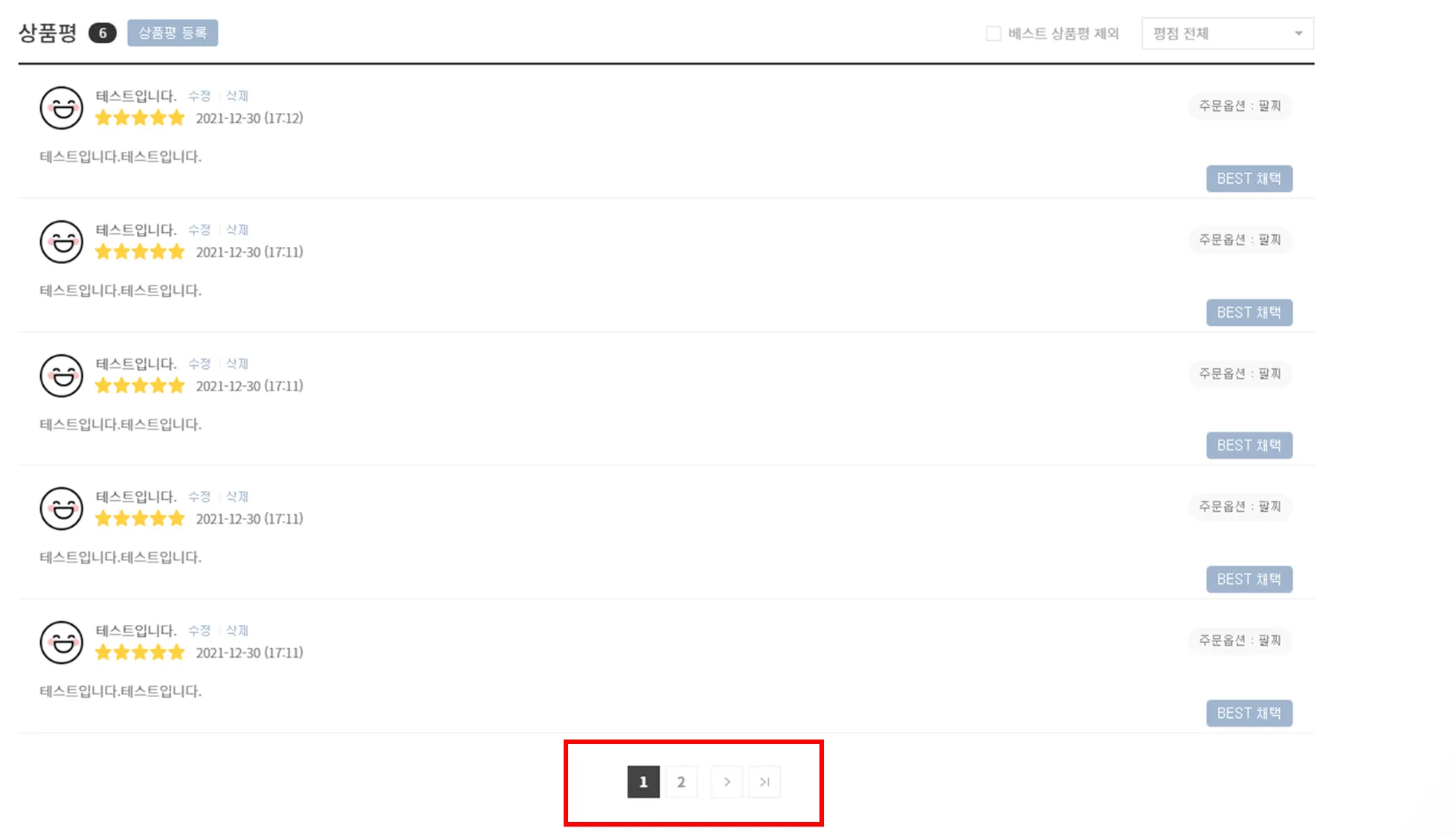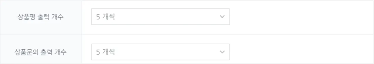 1페이지에 노출되는 상품평/상품문의 개수를 설정합니다.
