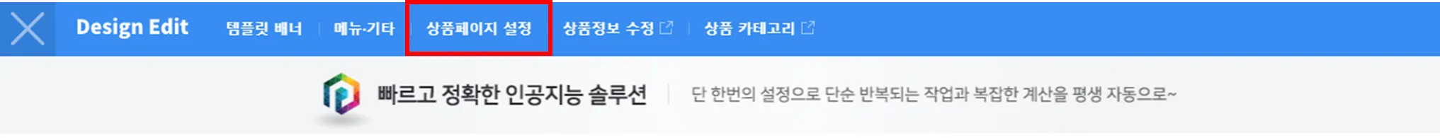쇼핑몰 상품페이지 화면에서 ‘Design Edit’ 실행했을 때 ‘상품페이지 설정’ 위치