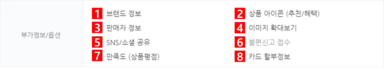 상품페이지에 출력을 원하는 부가정보/옵션을 선택하여 노출할 수 있습니다.