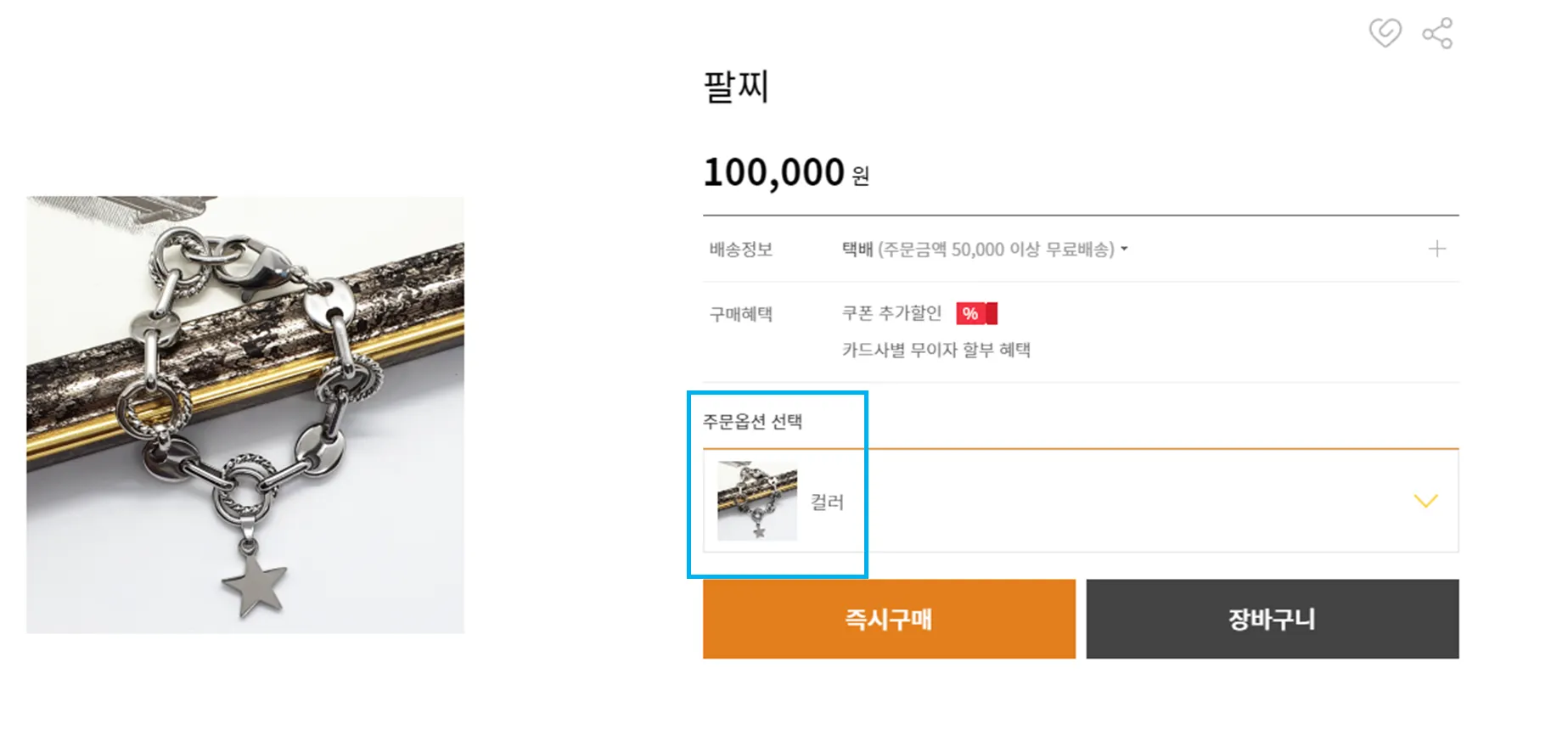 설정한 옵션 중 원하는 옵션을 선택하여 구매할 수 있습니다.