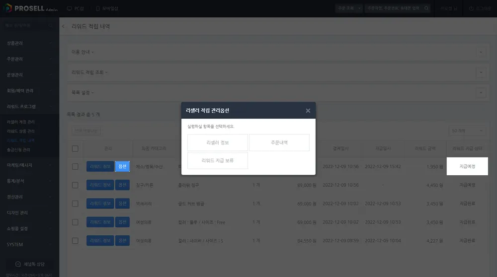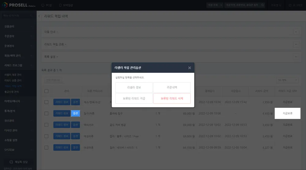 ※ 지급 보류 후 지급 예정으로 되돌리는 것은 불가능하며, 리워드 지급 또는 보류 내역 삭제만 가능 합니다.