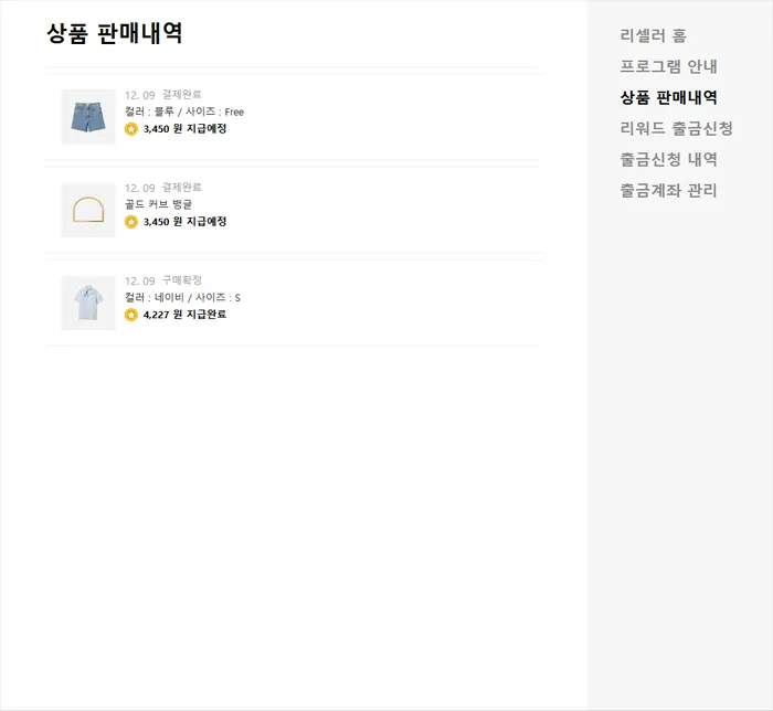 리셀러의 공유 링크를 통해 결제된 상품 내역을 확인할 수 있습니다.