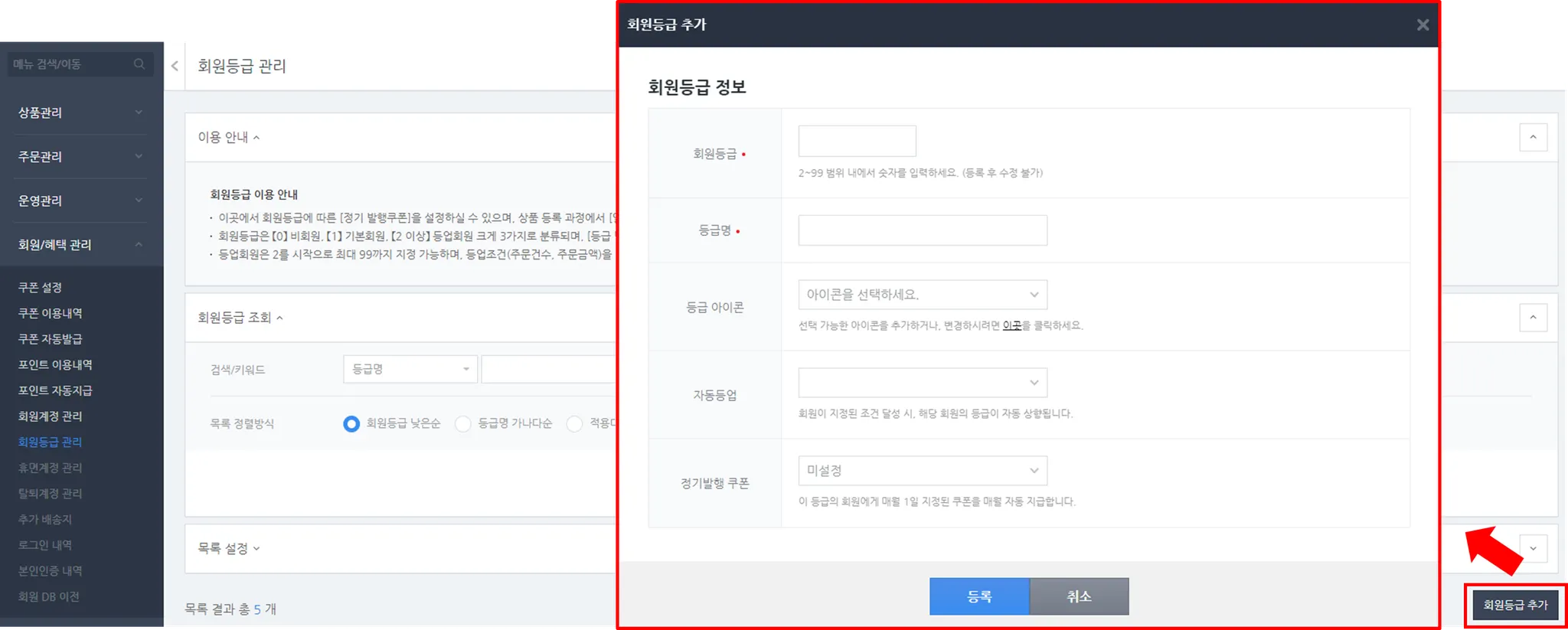회원/혜택관리 > 회원등급 관리