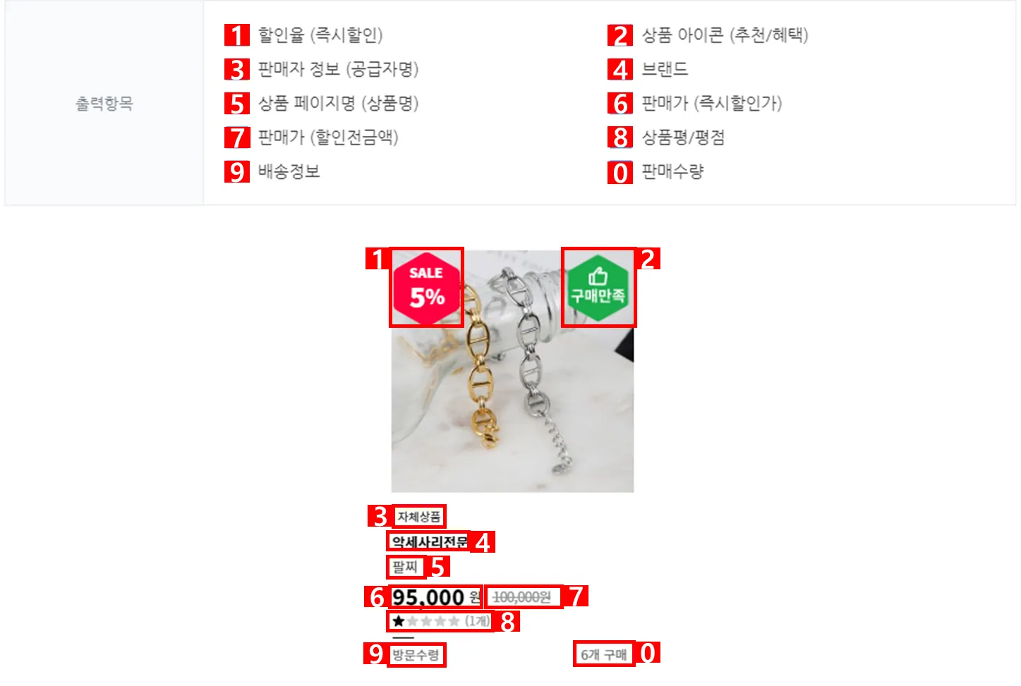 타이틀 : 상품 쇼윈도 영역의 명칭을 설정합니다. (신규 상품/ 이벤트 상품 등)