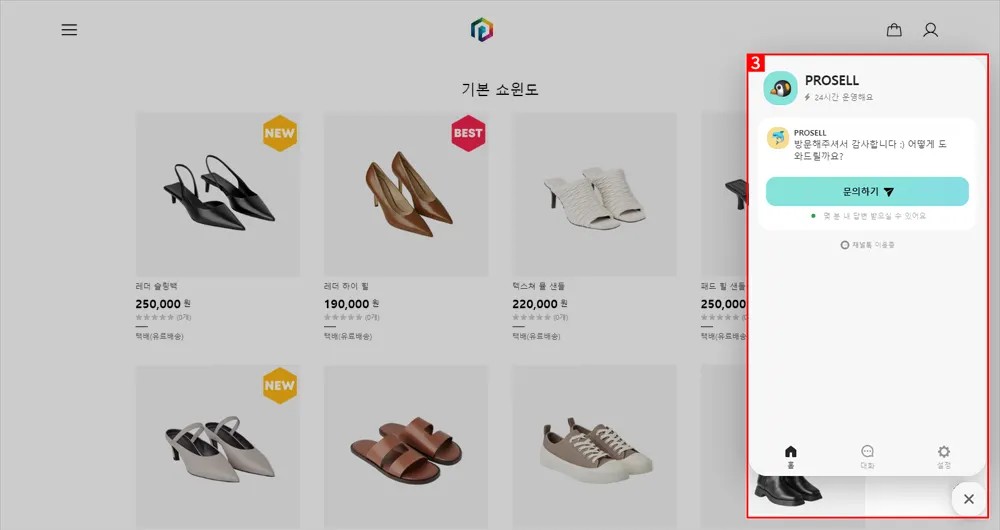 ③ 쇼핑몰로 이동 시 우측 하단에 채널톡 아이콘이 활성화 됩니다.
