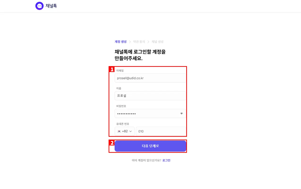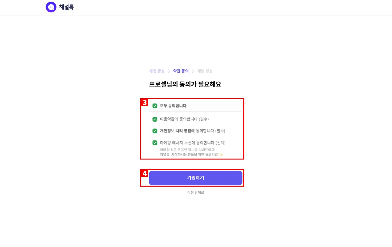3. 채널톡 계정 생성
