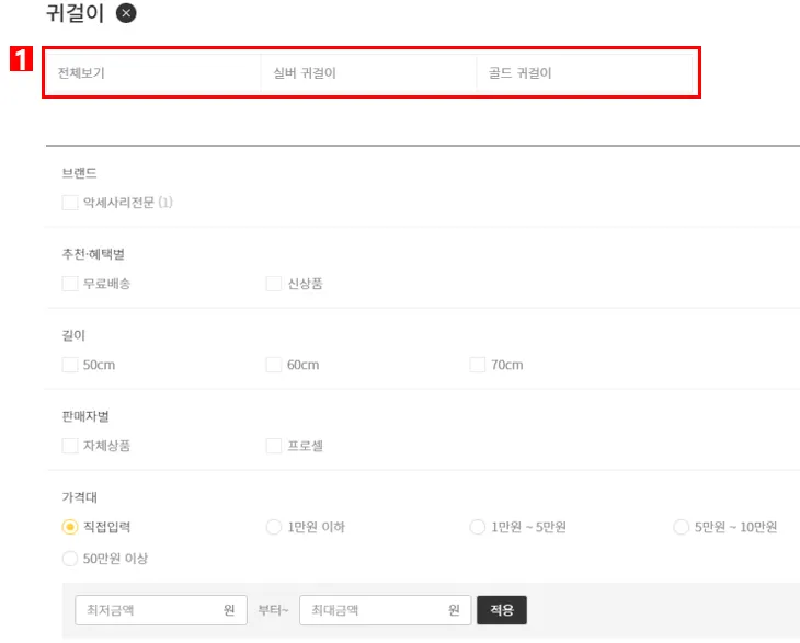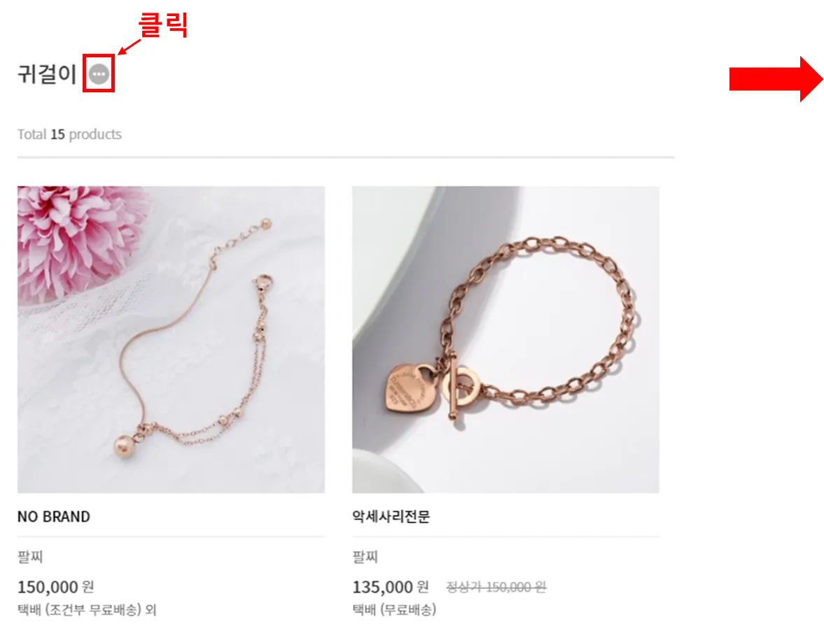 선택한 악세사리전문 브랜드 상품만 노출됨.
