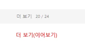 상품목록 1페이지에 노출되는 상품은 총 20개 이며, 추가 상품 노출은 페이지 이동 또는 더보기 버튼을 클릭하여 상품을 확인할 수 있습니다.