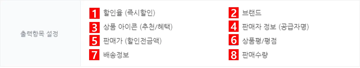 ※ 쇼핑몰 상품목록 화면에 노출되는 상품 정보를 설정하는 메뉴입니다.