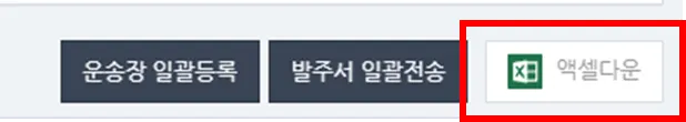 6) '엑셀다운' 버튼을 클릭하면 전체 주문내역에 대한 엑셀 다운로드가 가능합니다.
