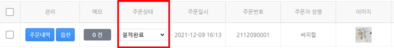 1) 관리자는 ‘목록 결과’에서 검색된 주문서의 '주문상태'를 확인할 수 있으며, 상태 값을 변경할 수 있습니다.