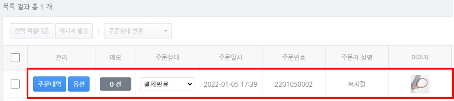 3) 조회된 주문서는 ‘목록 결과’ 화면에서 확인할 수 있습니다.