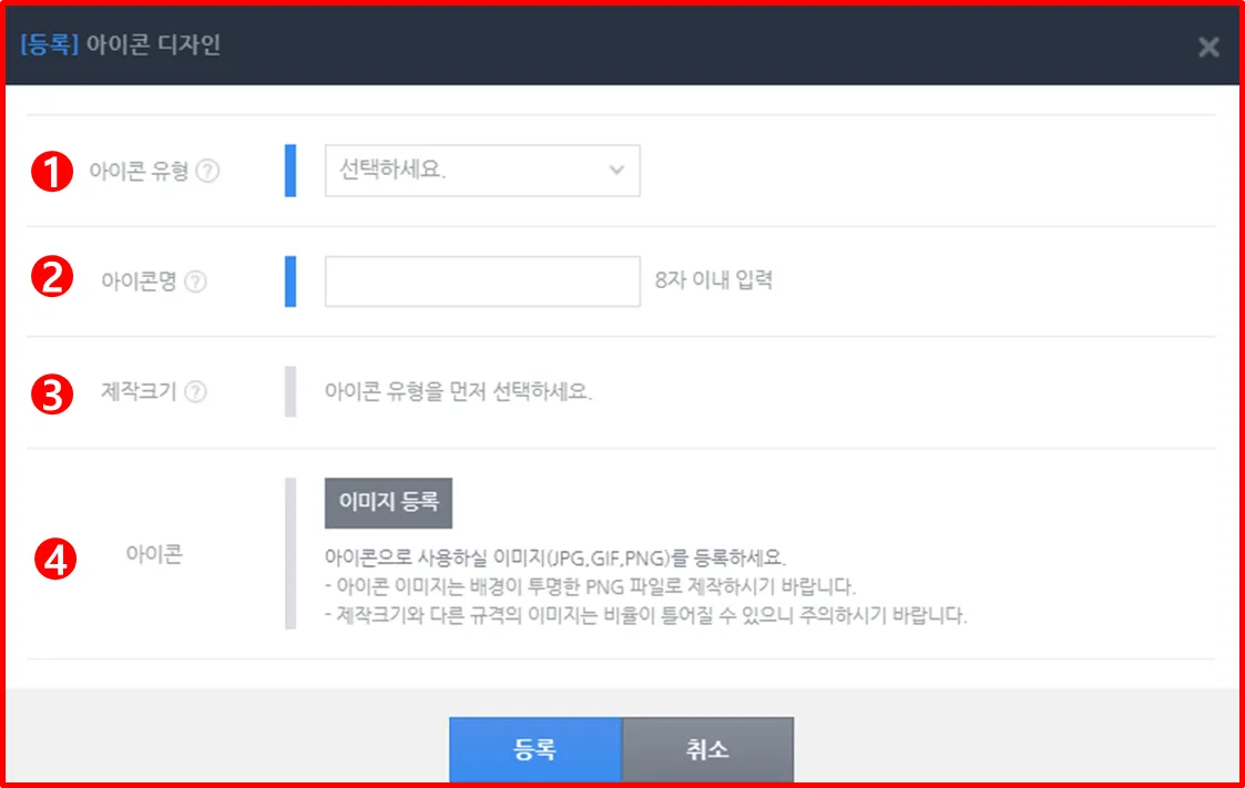 ④ 이미지 등록 : 아이콘으로 사용할 이미지를 등록합니다.