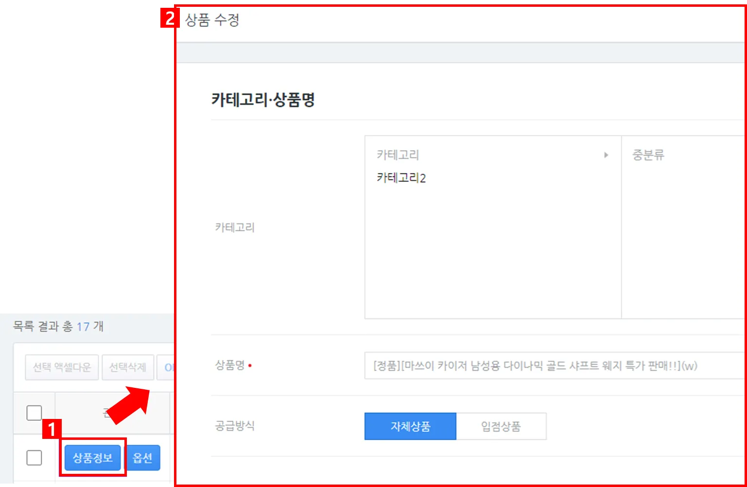 ① 검색된 상품 중 수정을 원하는 상품을 선택합니다.