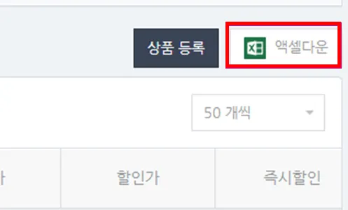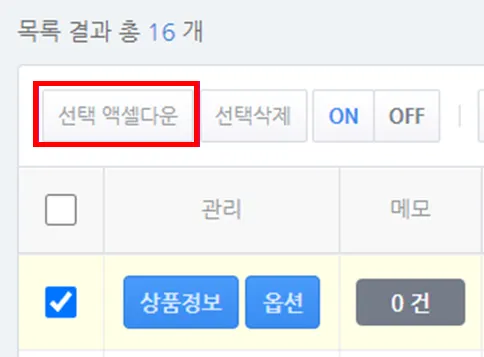 상품을 선택하지 않고 검색된 모든 상품을 엑셀로 다운받을 수 있습니다.