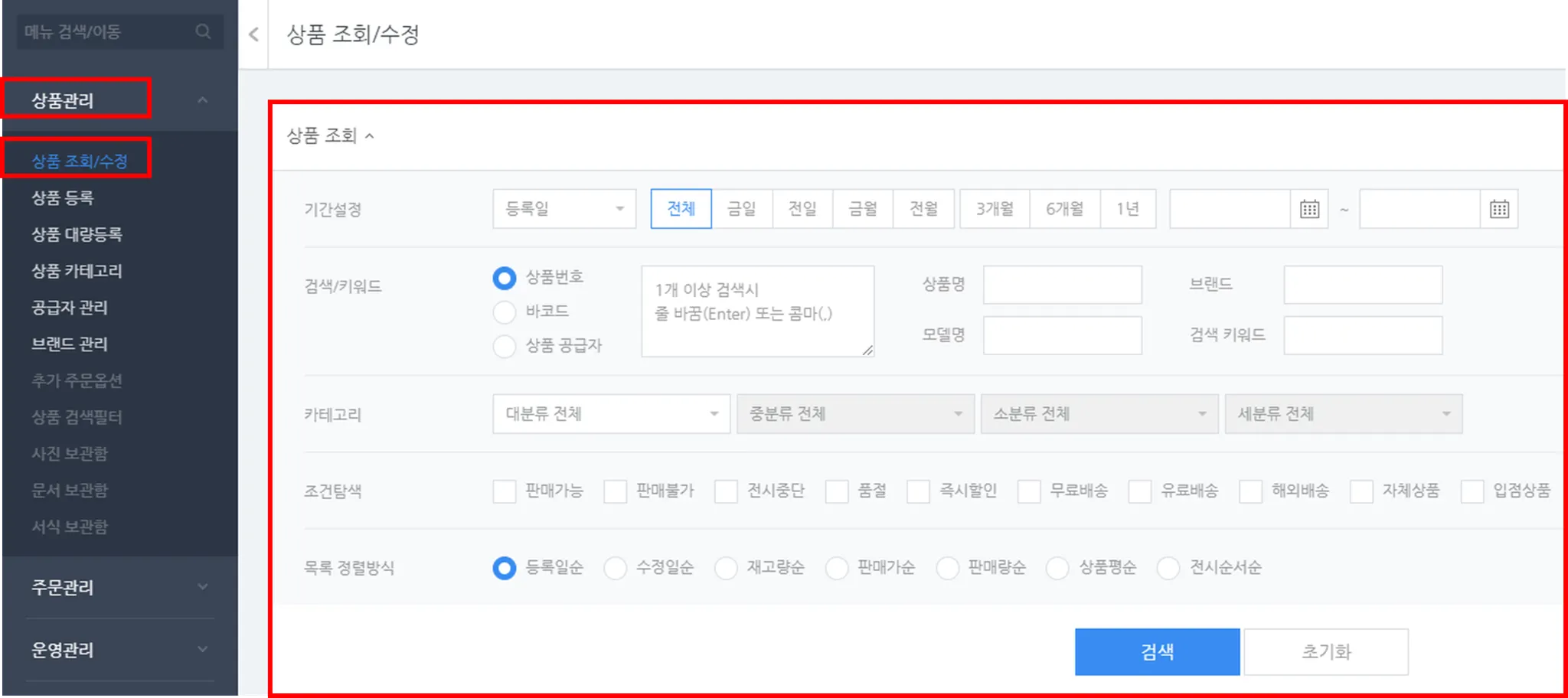 ※ 등록된 상품을 조회하고 관리하는 메뉴입니다.