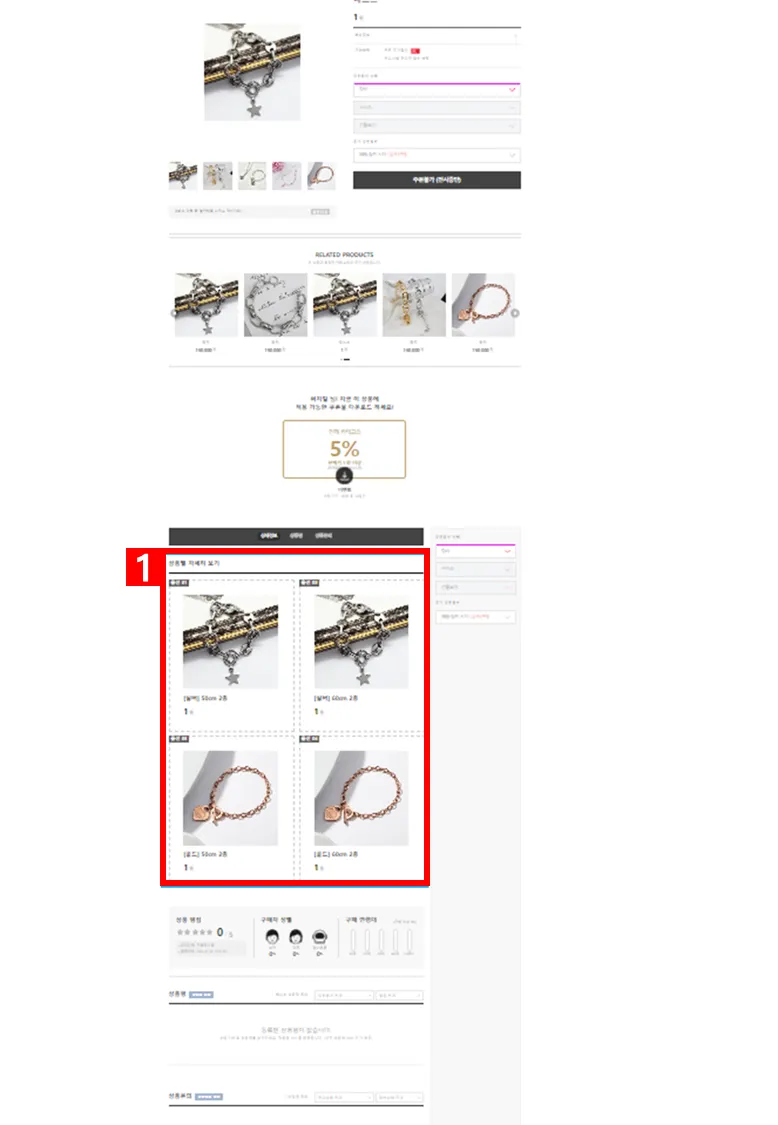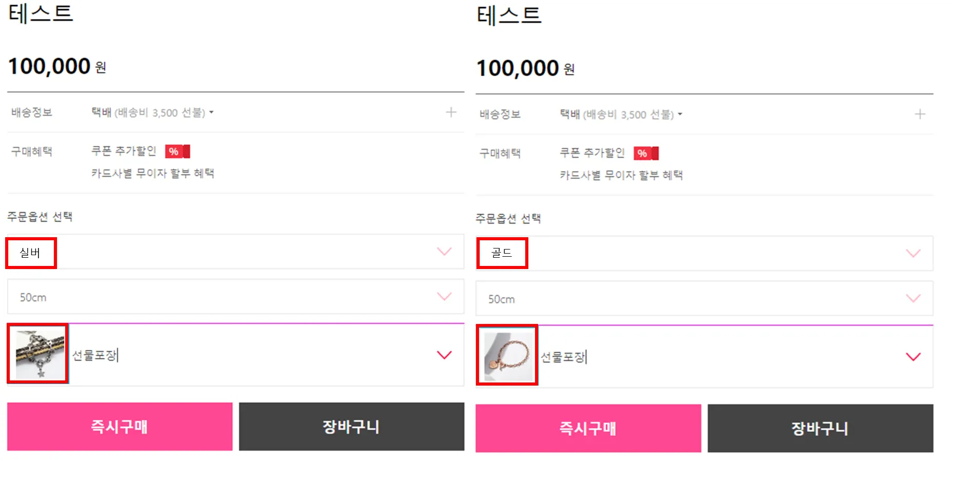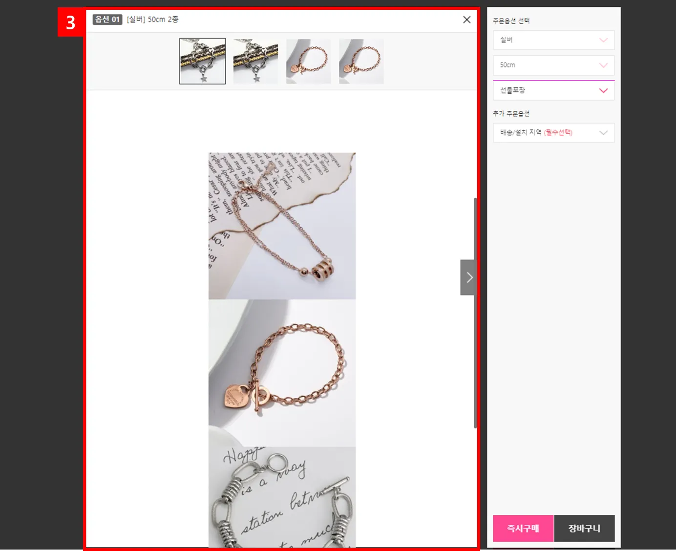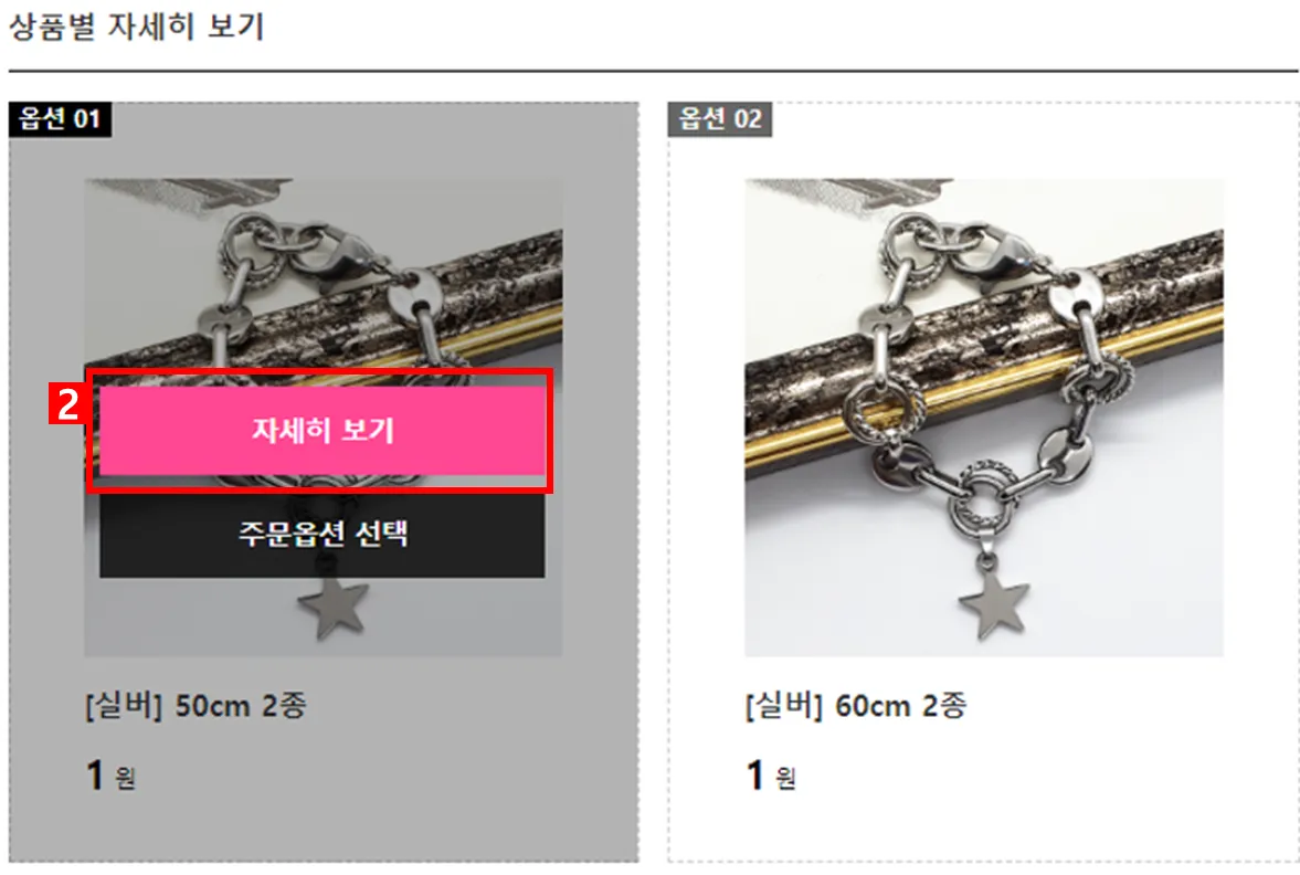 ① 쇼핑몰 상품 상세정보에 옵션 이미지가 출력됩니다.