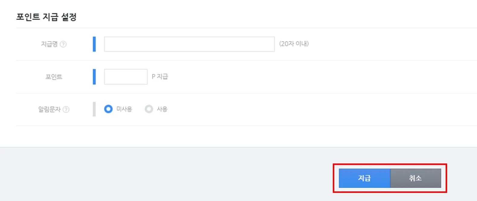 포인트 : 지급/차감할 포인트를 입력합니다.