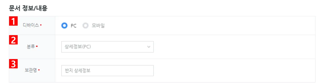 ③ 보관명 : 문서의 이름을 설정합니다.