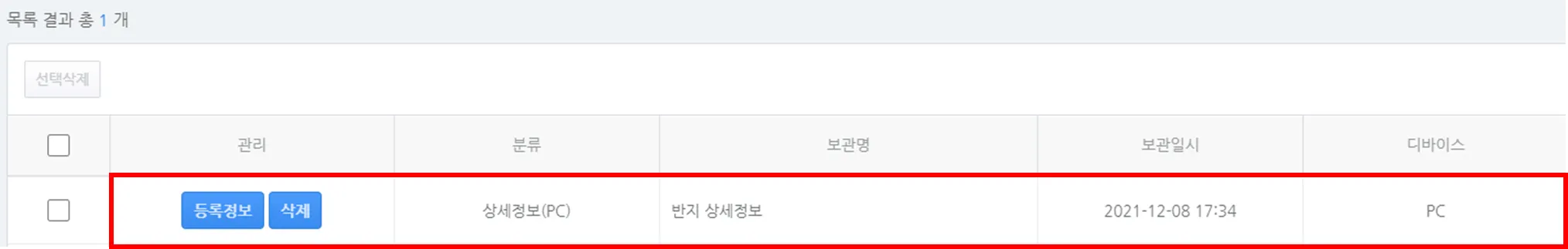 3) 등록이 완료되면 '목록 결과' 에서 등록된 문서를 확인할 수 있습니다.