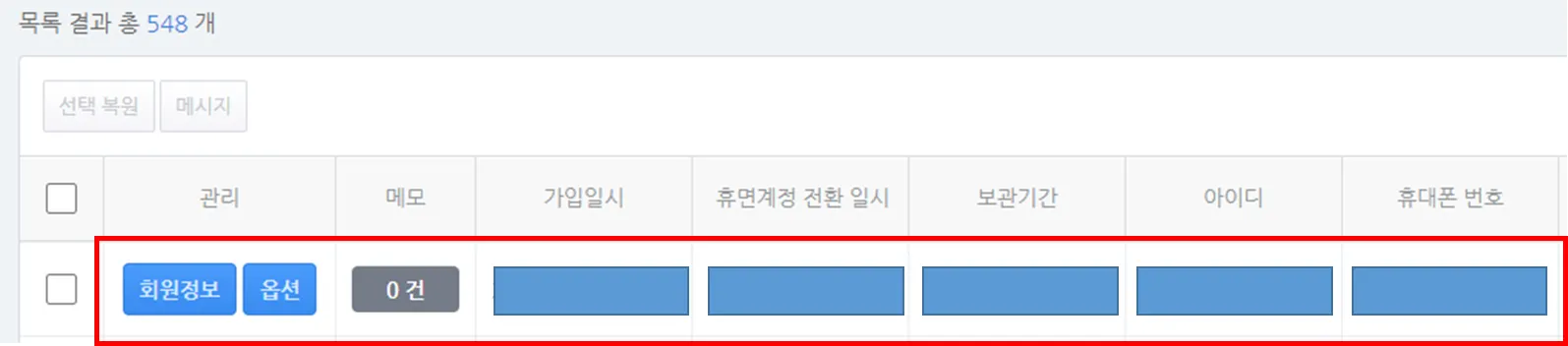 휴면회원 전환 후 1년이 경과되면 [휴면계정 관리] 메뉴에서도 자동 삭제됩니다.